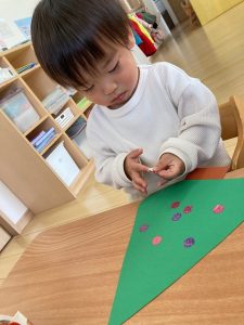 あっという間に12月になり、今年最後の楽しいイベント”クリスマス”に向けてクリスマスツリーをつくりました♬