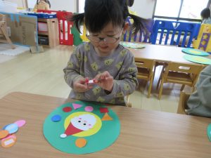 0歳児さんは、透明シートにシールをペタペタ🌝