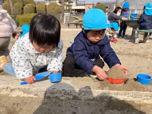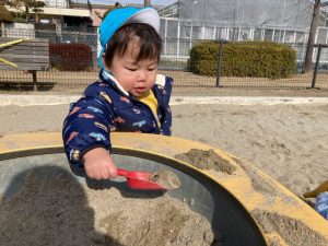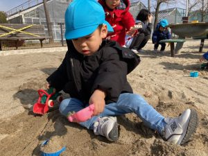 暖かい日に公園で久しぶりに砂あそびをしました。