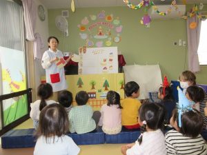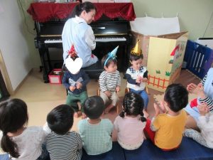 実は今回、保育士が森の動物たちもお誕生会によんでいました😉