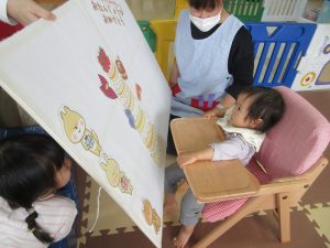 普段保育園で動画を見ることがないので、みんなちょっと緊張気味かな?
