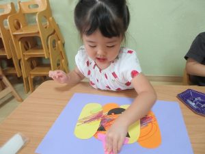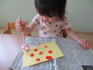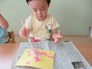 つきぐみさん・ほしぐみさんは、絵の具スタンプをしました。