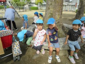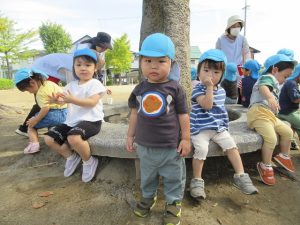 たくさん歩いたので公園で休憩をし、水分補給をしてからあそんでいます✨