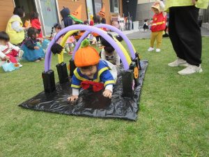 園庭に用意したフォトスポットで写真を撮ったり、トンネルくぐりなどのゲームを楽しんだり😉