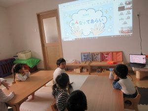今年度初めてそらぐみさんが手洗い教室に参加しました。