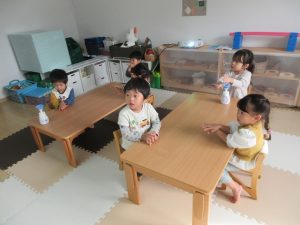 この日の給食の前からしっかりと楽しんで手を洗えるようになりました。