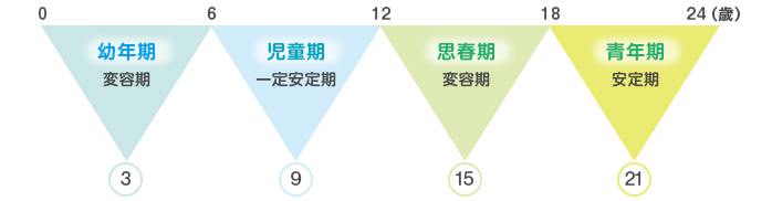 思春期:12~18歳 思春期はホルモンの変化が大きく、幼年期と同じように心身の大きな変化があります。